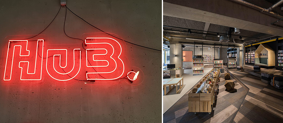 HuB is een hedendaags cultureel centrum en huist drie disciplines t.w. theater, bibliotheek en muziekschool, naar het idee van architect Aat Vos met 200.000 bezoekers op jaarbasis. Een urban huis-/studeer-/werkkamer waar culturele activiteiten en jong en oud samenkomen. De letterlijke betekenis van de naam HuB is 'naaf'. Een plek waar alles bij elkaar komt, de spil, de as waar verbindingen worden gemaakt. Alleen al in HuB worden maandelijks ruim 150 doosjes getrokken. Het project is geliefd en wordt gedragen door kunstliefhebbers en de kunstenaars.